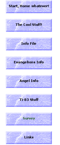 My favorite TV show would have to be Evangelion; a Japanese animation. You might have seen the X-men and shows along those lines but its the pits compared to Japanese animation. I'm drifting from the point. The cartoon is set in the future and the world is being attacked by Angels huge creatures that come from space and destroy everything. A special organization called Nerve (don't ask me why) with huge budget try to stop these angels and to do that the man in charge Ikarie an mean cold hearted bastard uses his own son to pilot an Eva (synthetic Robots that only 14 year old teenagers can control). Others come along the way to if they want to or not. You learn what the Eva's are really and what the real purpose of Nerve was. This show is a must see, its on video and if you live in Australia (Down Under) you can watch it on Saturday 9:00pm on SBS E.S.T.Don't pass judgement until you have seen it. My next Favorite is South Park i don't have to say anythin it says it all.
