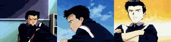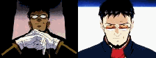 Touji and Kensuke both attend school with Shinji and are his only friends. At first, Touji's sister got hurt during the first attack and blamed that accident on Shinji. So as you can see they got off to rough start, but as the series comes along they become great friends. Touji is also the 4th pilot for Eva Unit-03. Kensuke has an obsession for army stuff.
